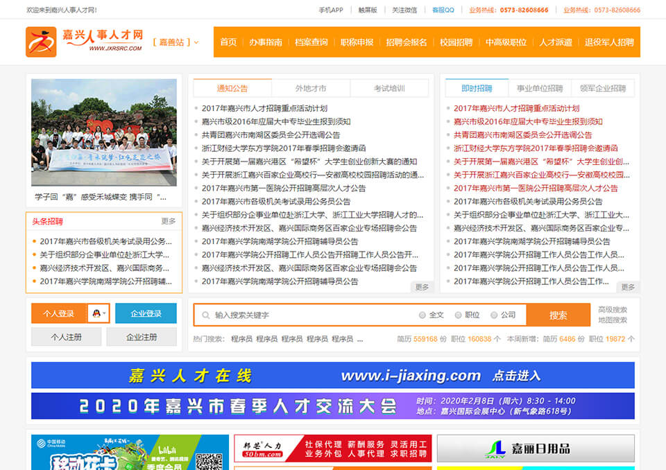 公司自主開發(fā)和運(yùn)營(yíng)的嘉興人才網(wǎng)( www.573job.com )和舟山人才網(wǎng)( www.93job.com )等平臺(tái),經(jīng)過多年發(fā)展已經(jīng)成為當(dāng)?shù)刈罹哂绊懥Α⒆罹邫?quán)威性、最具招聘效果的人才網(wǎng)站之一。